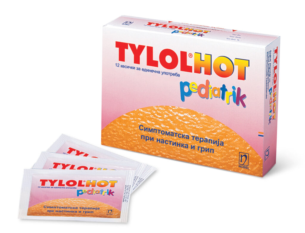 Тајлол Хот педиатрик е посебна формулација за употреба кај деца над 6 години, која обезбедува ефикасно олеснување на симптомите при настинка и грип како: потешкотии и болка, главоболка, затнат нос и синуси, намалување на покачена телесна температура.
