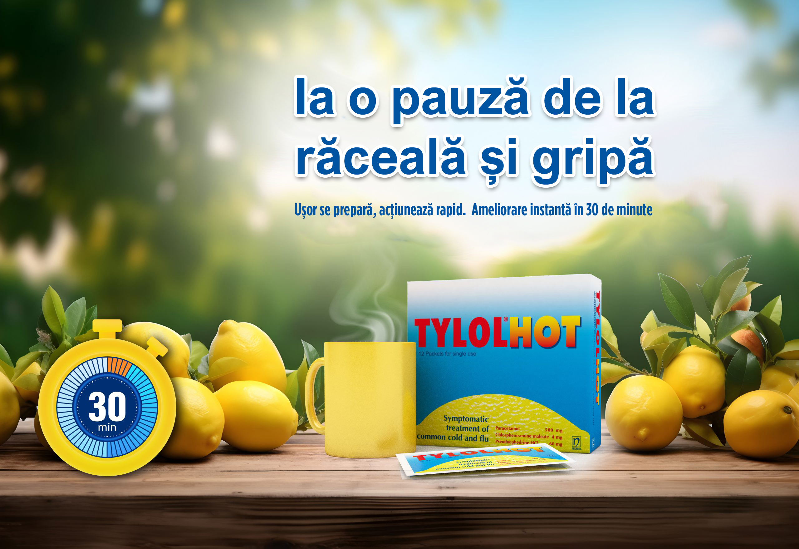 „Tratează simptomele răcelii și gripei cu Tylol Hot”